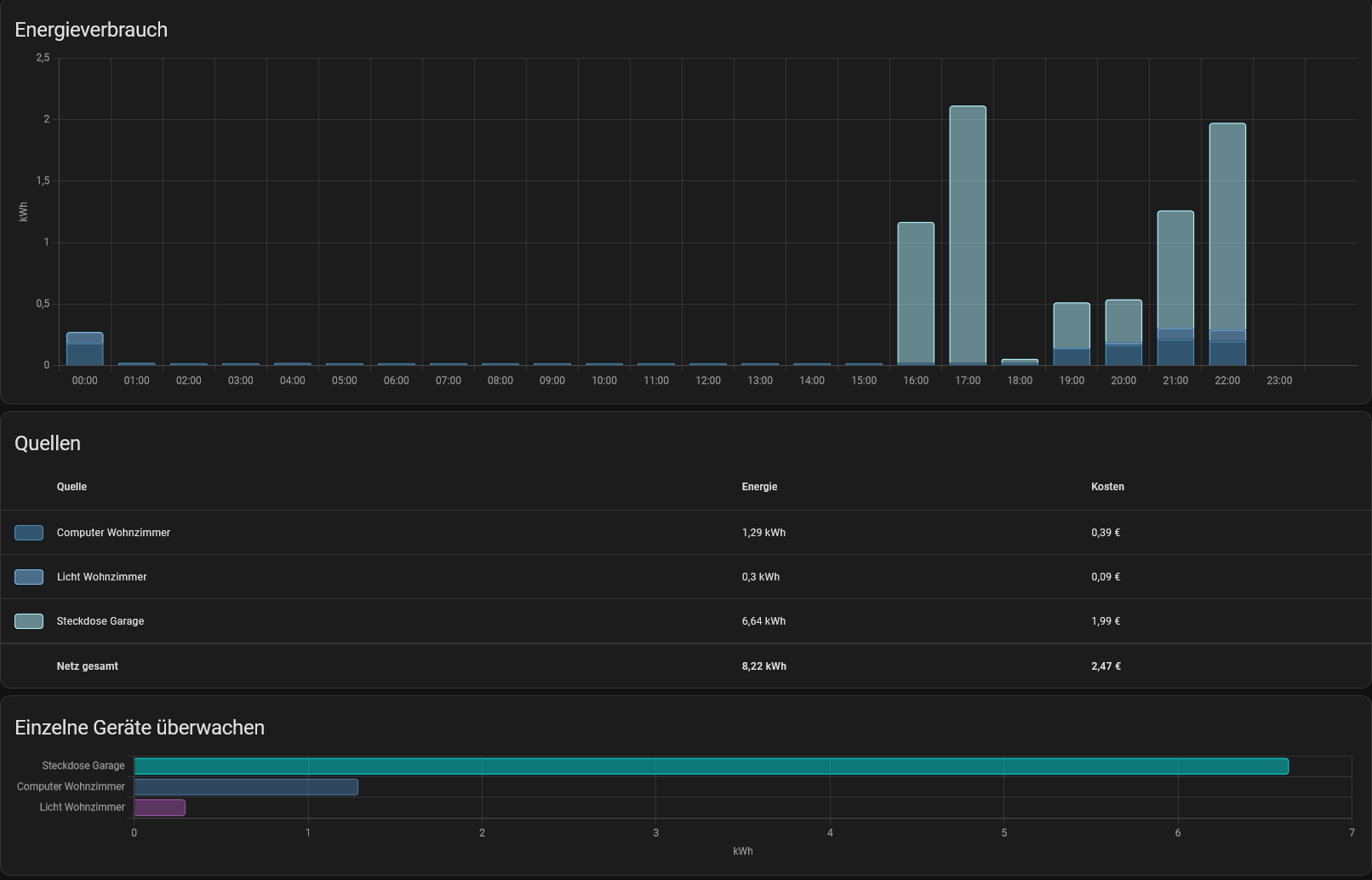 Im Dashboard wird auch immer der Aktuelle verbrauch angezeit… Aber mir ist aufgefallen das sich hier teilweise mehrere Stunden bei “Steckdose Garage” der Momentanverbrauch nicht ändert.