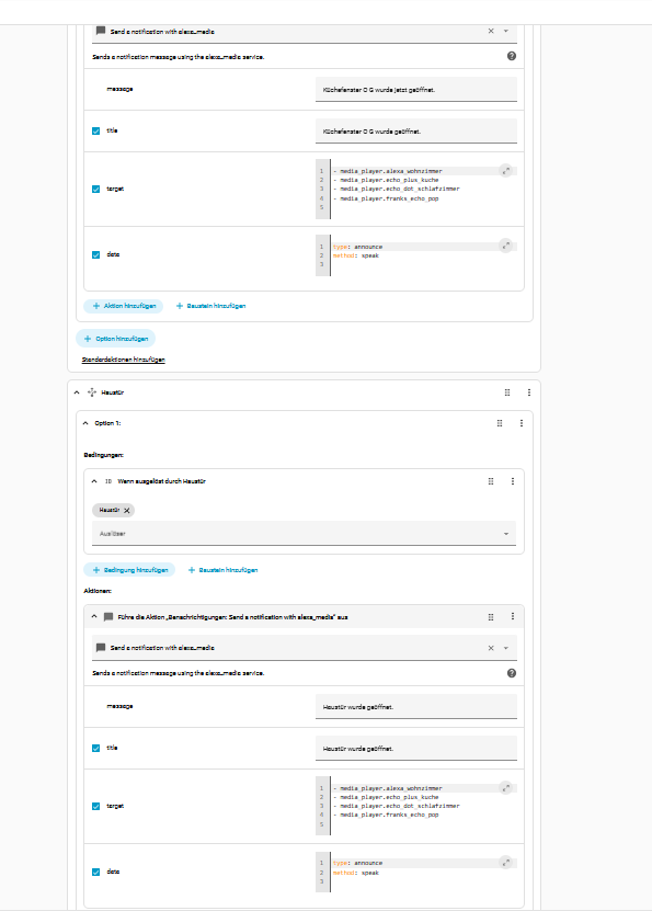 Was aber anders ist, ist die Alexadurchsage. Diese ist z.B abhängig, welcher Tür- und Fensterkontakt geöffnet wurde. Dementsprechend ist die Meldung eine andere.