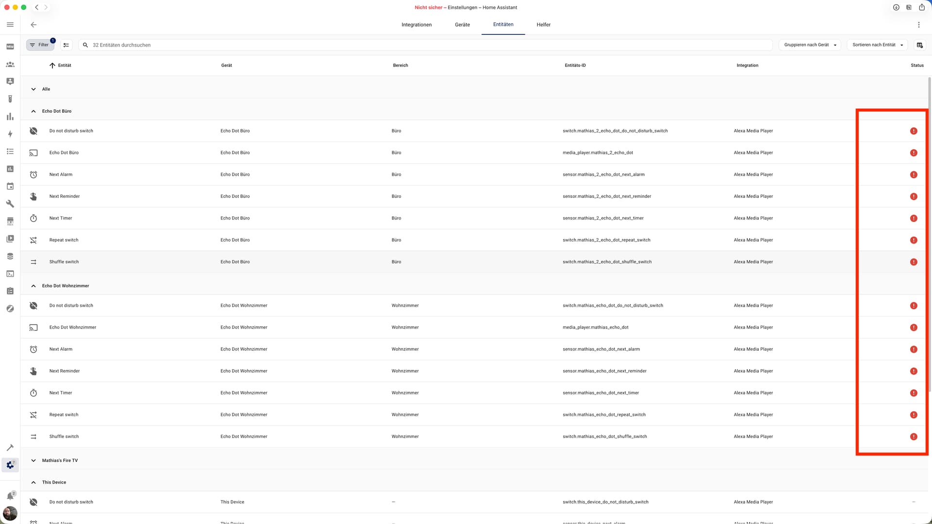 Ich habe bei Amazon meine Mailadresse ändern müssen, daraufhin ist natürlich auch die Alexa Integration gecrasht. Ok schnell mit der neuen Mailadresse hinterlegt und siehe da alle Geräte waren wieder sichtbar…Moment … die Entitäten haben noch den alten Namen und die alten Geräte wäre auch noch zu sehen… Automationen haben zumindest so oder so nicht funktioniert.