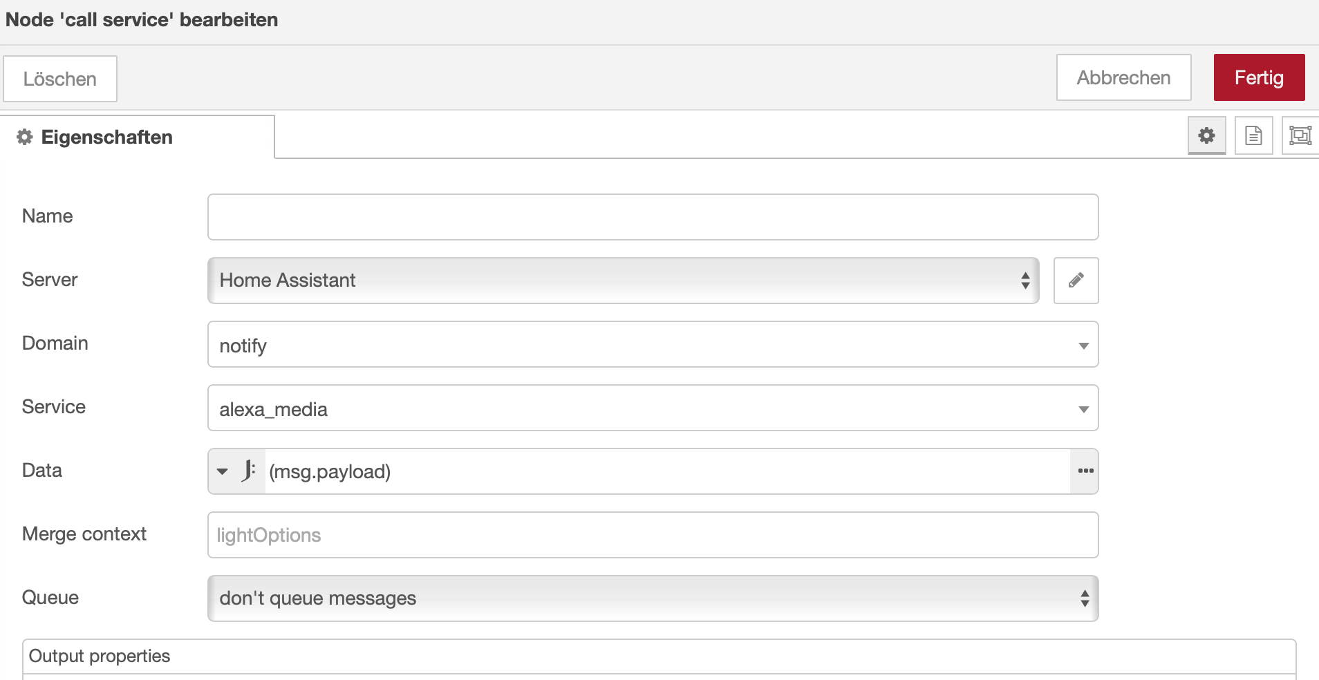 - mit einem Call-Service (notify to Alexa) den Payload ausgeben lassen