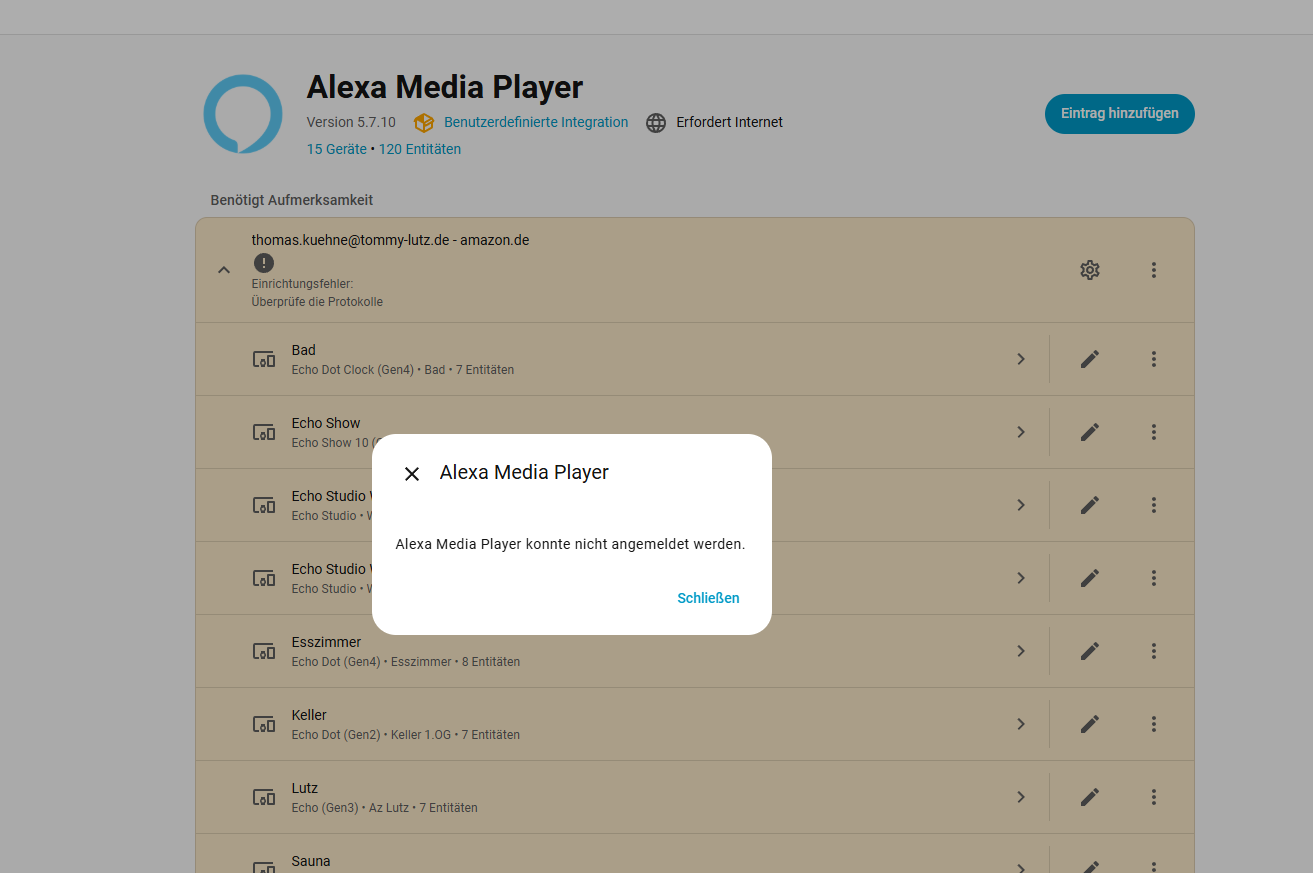 ich denke mal, das ist das Thema Alexa Media Player wieder probleme?