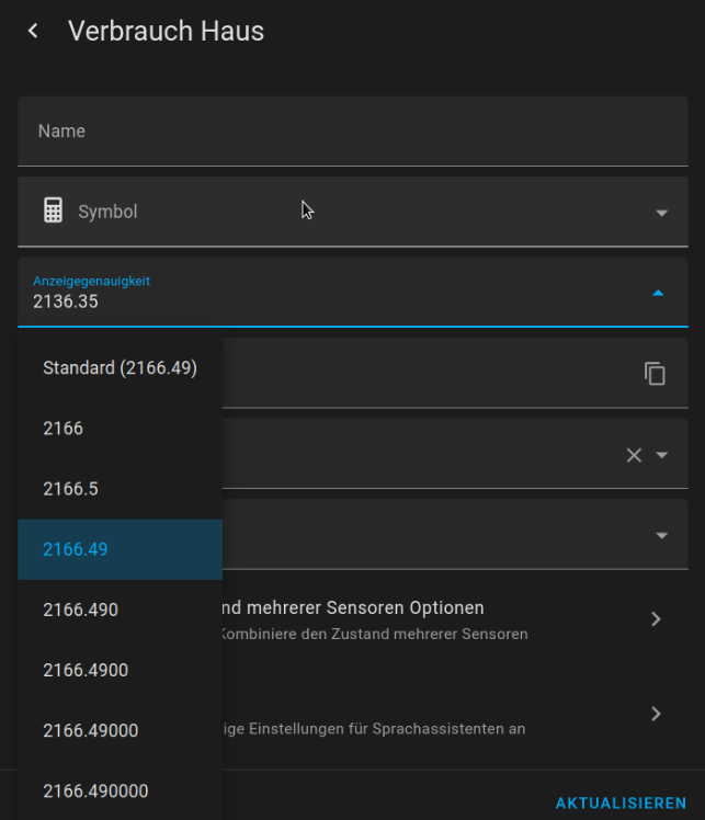 Kann man doch in der Entität selber einstellen, nennt sich Anzeigegenauigkeit.