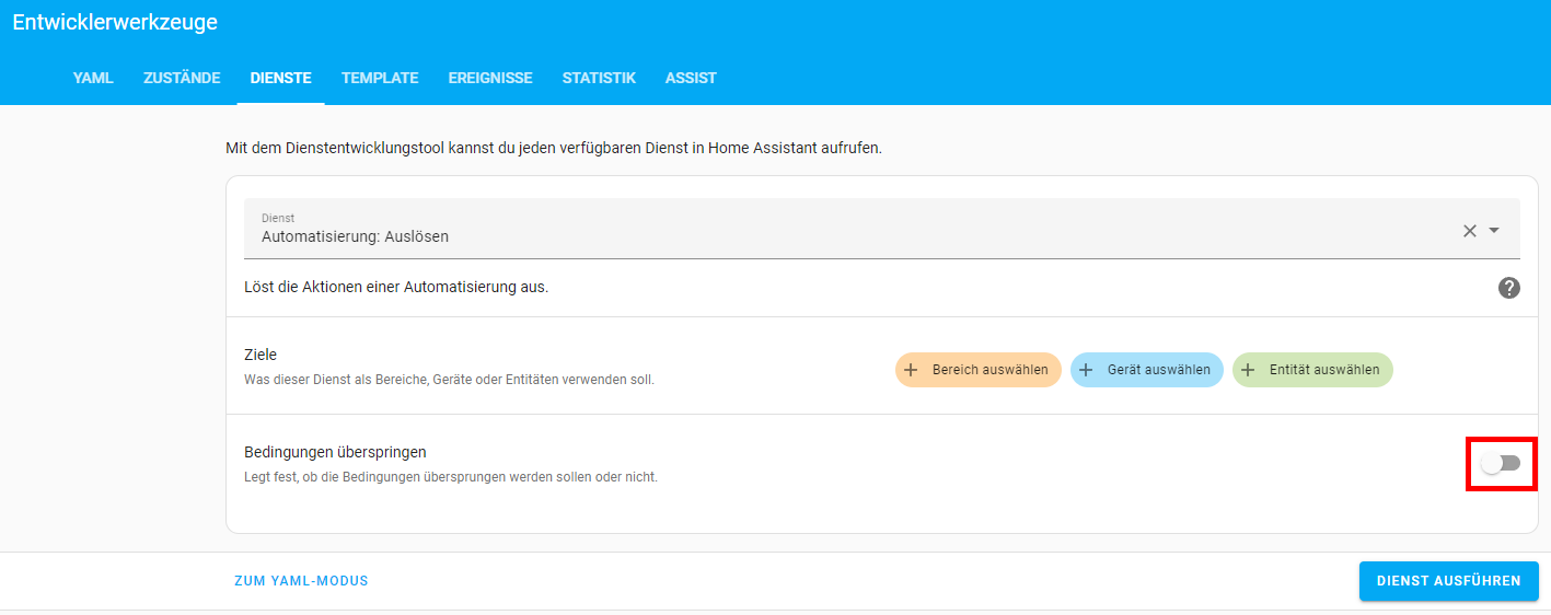 Zum Testen habe ich mir mal eine Automation angelegt, die einen input_boolean Helper auf “on” schalten soll. Aber nur, wenn dieser auf “off” ist. Und dann soll noch eine Nachricht ausgegeben werden. Eigentlich ja recht einfach, aber ich finde den Fehler nicht, denn die Aufgaben (Dann mache-Abschnitt) werden immer ausgeführt, auch wenn der helper schon auf on steht, heißt es kommt immer eine Nachricht. Als Auslöser habe ich mal eine Uhrzeit angegeben, zum Testen führe ich es aber manuell aus.