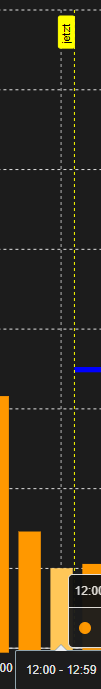 Also um 14:20 ist die strichelte Linie auf der Zeitskala exakt bei 14:20. Sprich das springt nicht in den Intervallen in denen du die Balken darstellst.