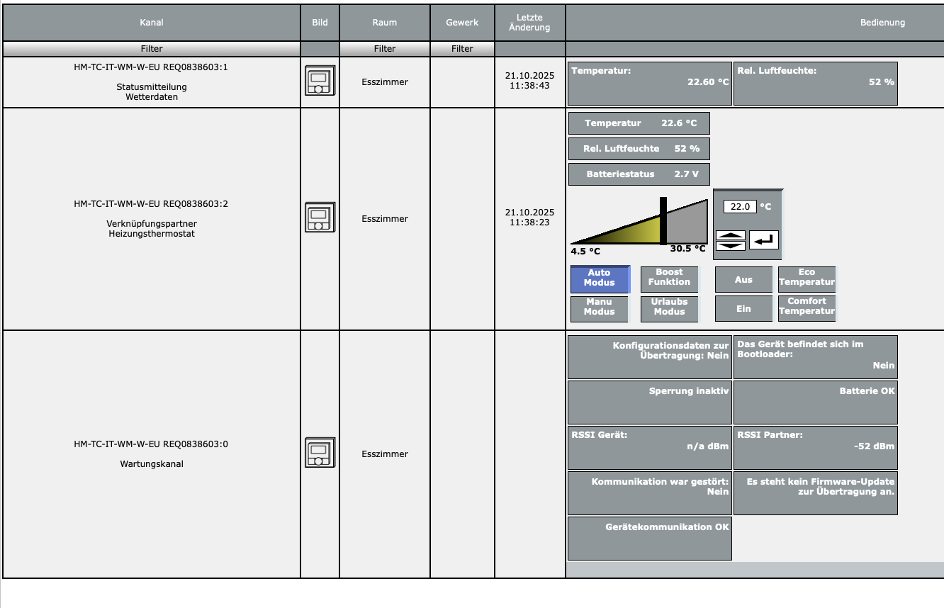 Je nach Homematic-Integration können Sie die Heizung ausschalten und den Status in der RaspiMatic-Oberfläche aktualisieren. -