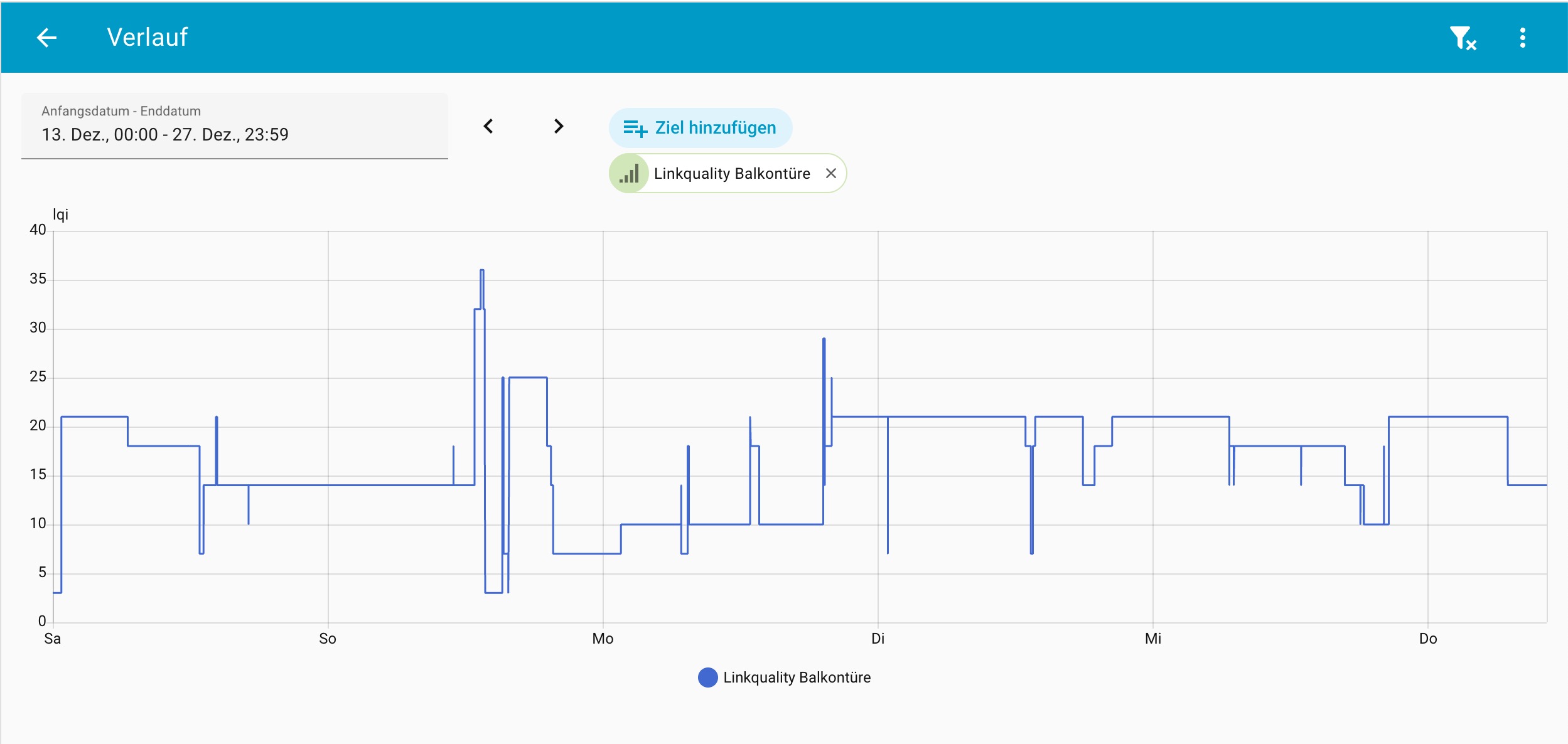 Wie sich dieses Verhalten dann genau darstellt weiß ich auch nicht, aber ein on- oder offline siehst Du ja bereits bei der Aktivitäts-Anzeige zu dem Sensor unter HA. Auch kannst Du, bzw. würde ich, immer mal wieder einen Blick auf den Verlauf der LQI-Werte werfen - Bsp. Tuya Tür-/Fenstersensor