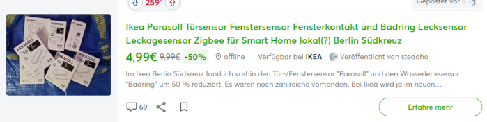 Da Ikea Zigbee ja aus dem Sortiment wirft und in vielen Ikea Filialen u.a. die Parasoll jetzt für € 4,99 zu bekommen sind, macht das die Teile natürlich reizvoll. Wenn da nur nicht die Probleme damit wären.