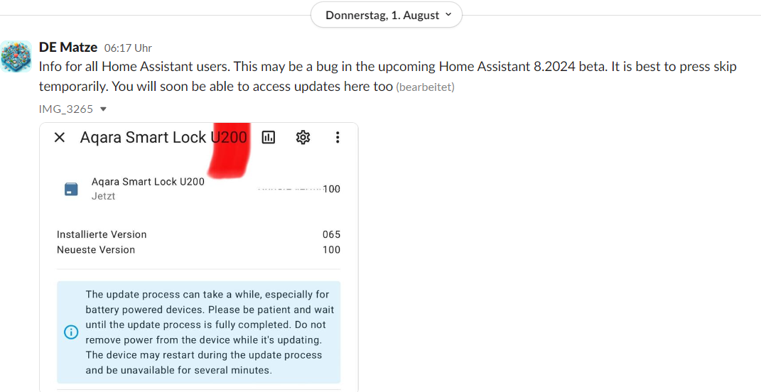 HA zeigt mir ein Update (Version 100) an. In der Aquara-App tut sich aber nichts, wenn man neue Updates sucht. Hat jemand einen Tipp?