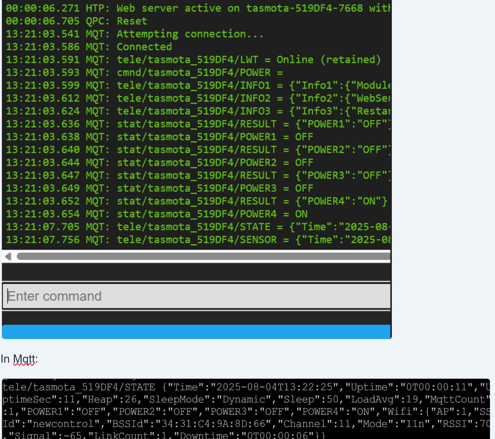 nein, in HA ist alles inaktiv und ich habe jetzt ein Lösung gefunden, ich habe sie zu ESPHome umgeflasht und jetzt kann ich sie wieder steuern. Ob jetzt Tosmota oder ESPHome ist mir egal wenn sie so geht. Danke für die Unterstützung, verstehen kann ich das Problem aber nicht.