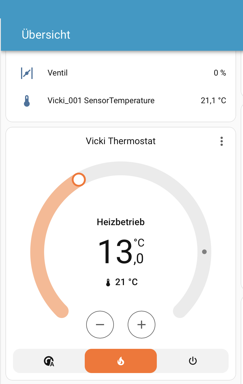 Ich hatte bei Tests die Thermostate auf 21°C gestellt, habe ich am Thermostat gedreht stieg der direkt auf 30°C. Daher habe ich über HA die Kindersicherung aktiviert und steuere nur über HA.