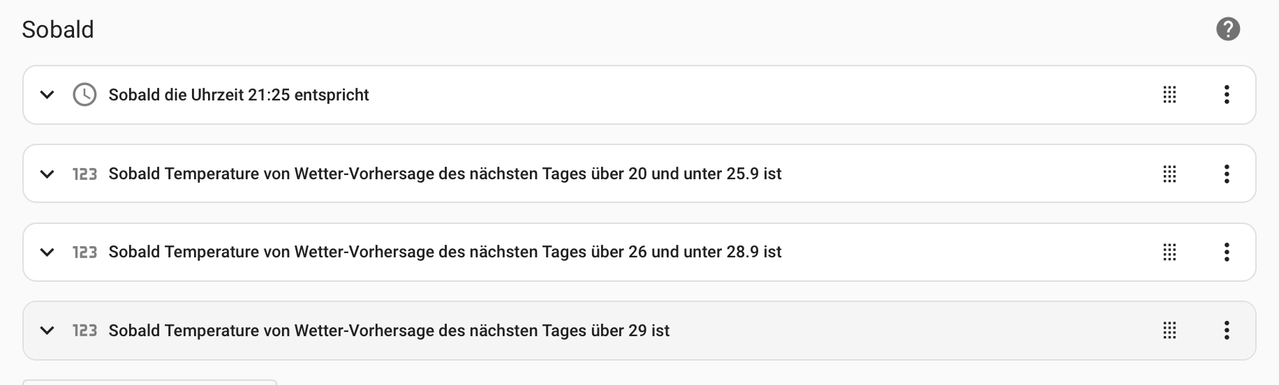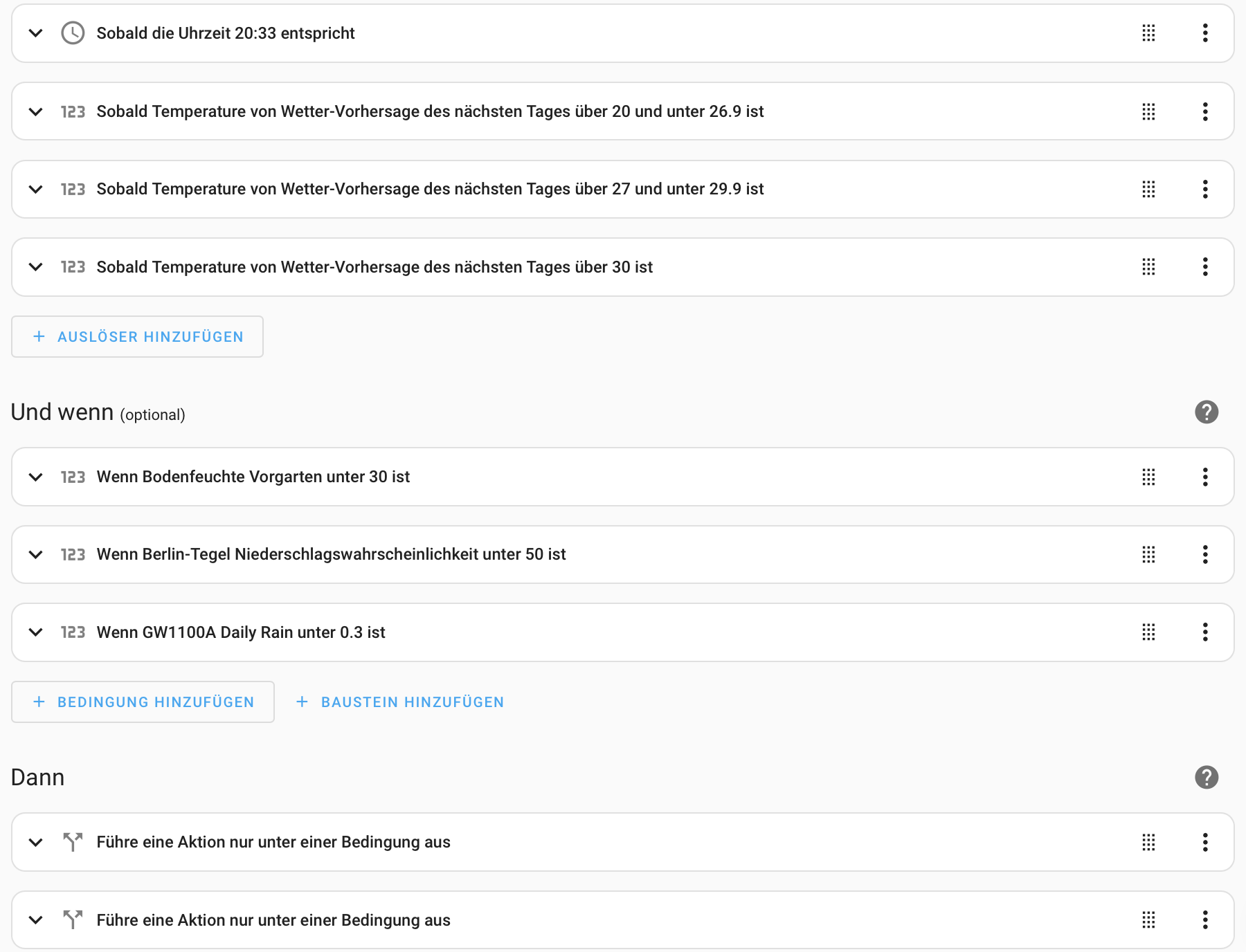 Aber dann müsste ich ja als Trigger die Uhrzeit nehmen und zusätzlich die verschiedenen Temperatur-Vorhersagen.