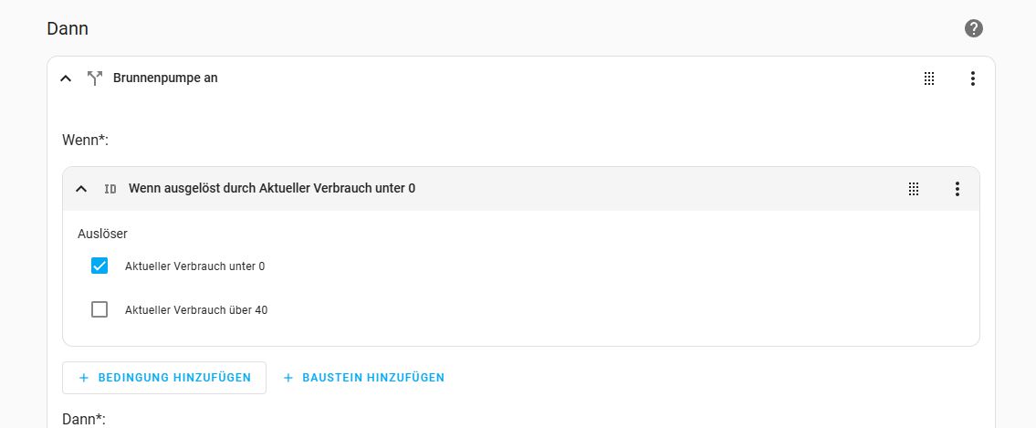Bei “Dann” nehme ich “Bewässerung starten” und wähle dazu die passende Entität.
