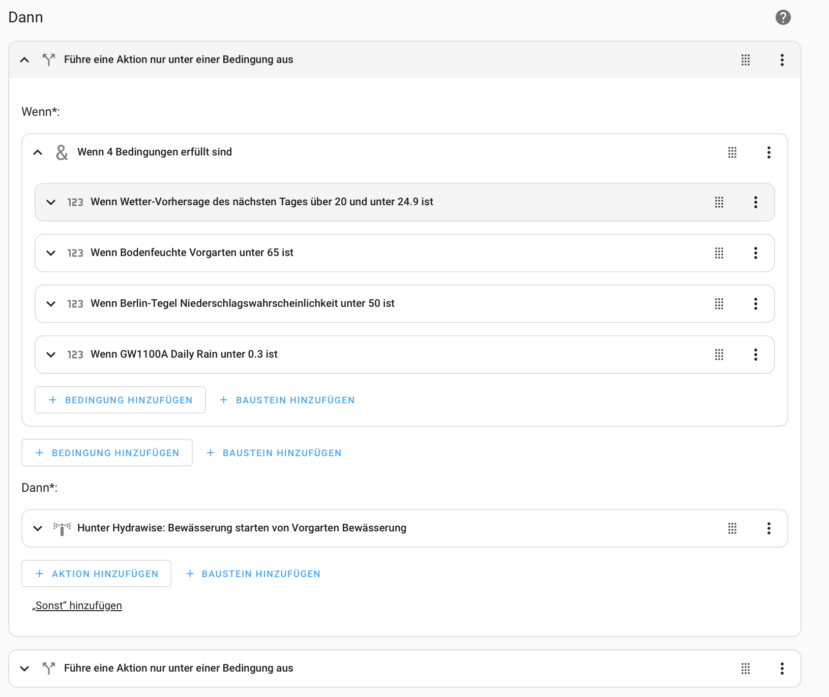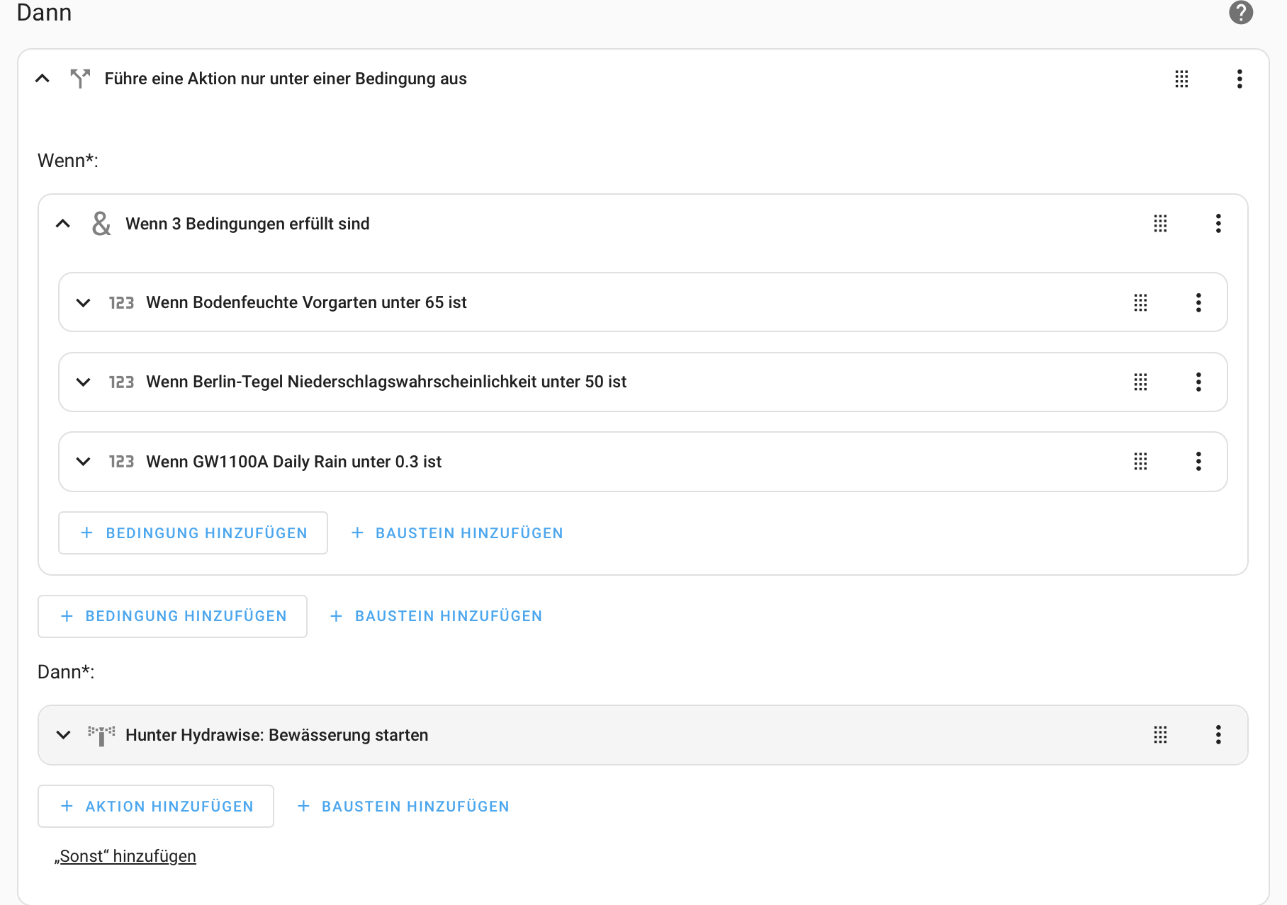 Also Als Trigger nimmst Du “Bodenfeuchte Vorgarten unter 65%”
