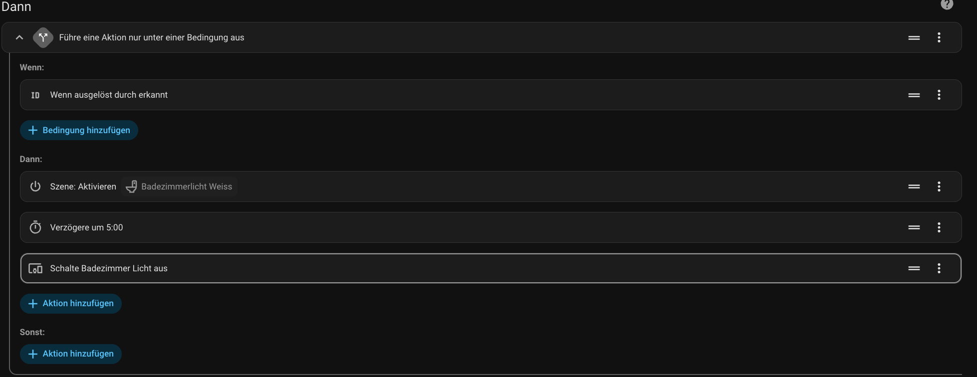 @41564 Das war nicht die Frage von @celliwe1981 Natürlich sind x andere Varianten zur Lichtsteuerung Bad möglich. Jeder wie er möchte. Das ist das tolle an Home Assistant - total flexibel