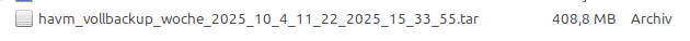 Da hier noch niemand danach gefragt hat. Wie groß ist Dein HA Backup überhaupt? D.h. wie groß ist die *.tar Datei mit dem Backup. Bsp.: