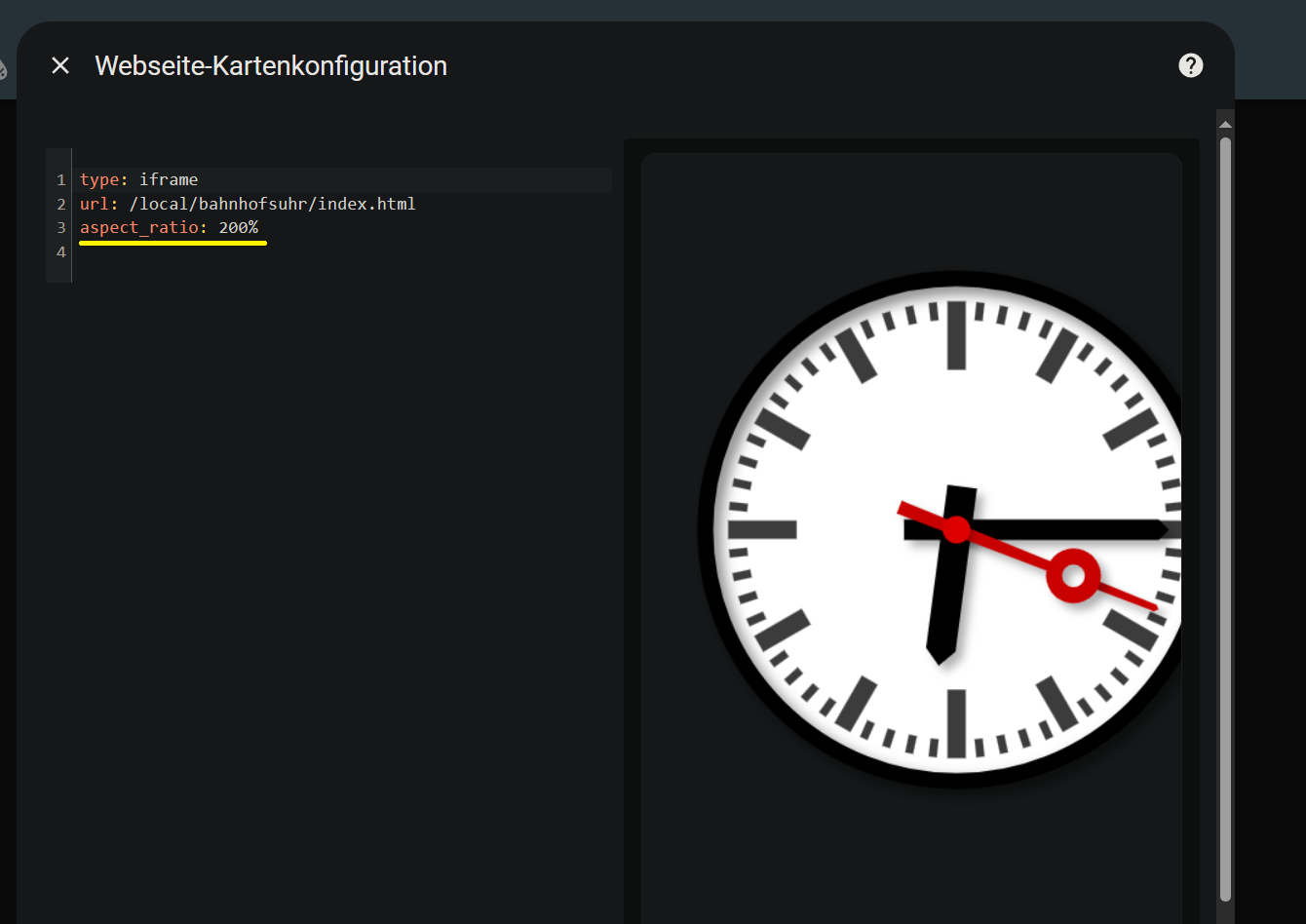 Der yaml Code ist das selbe wie die Karte “Website” in der Auswahl.