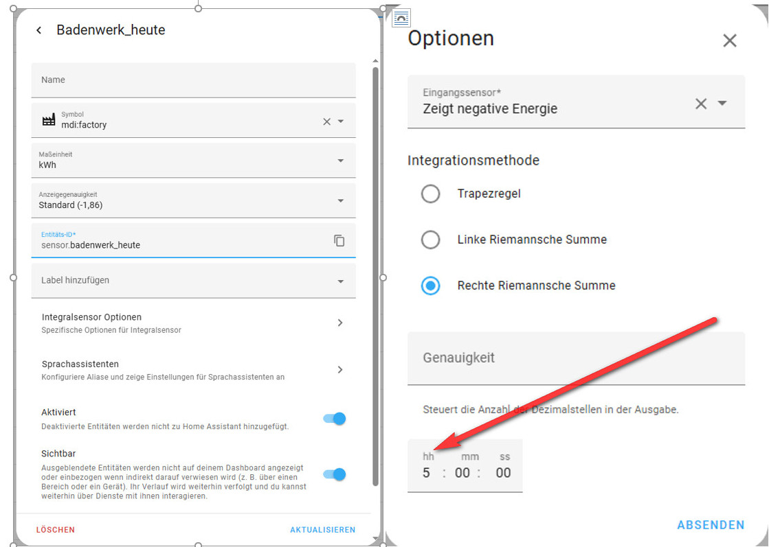 Der dazugehörige Riemann Summenintegral Sensor sieht bei mir dann so aus: