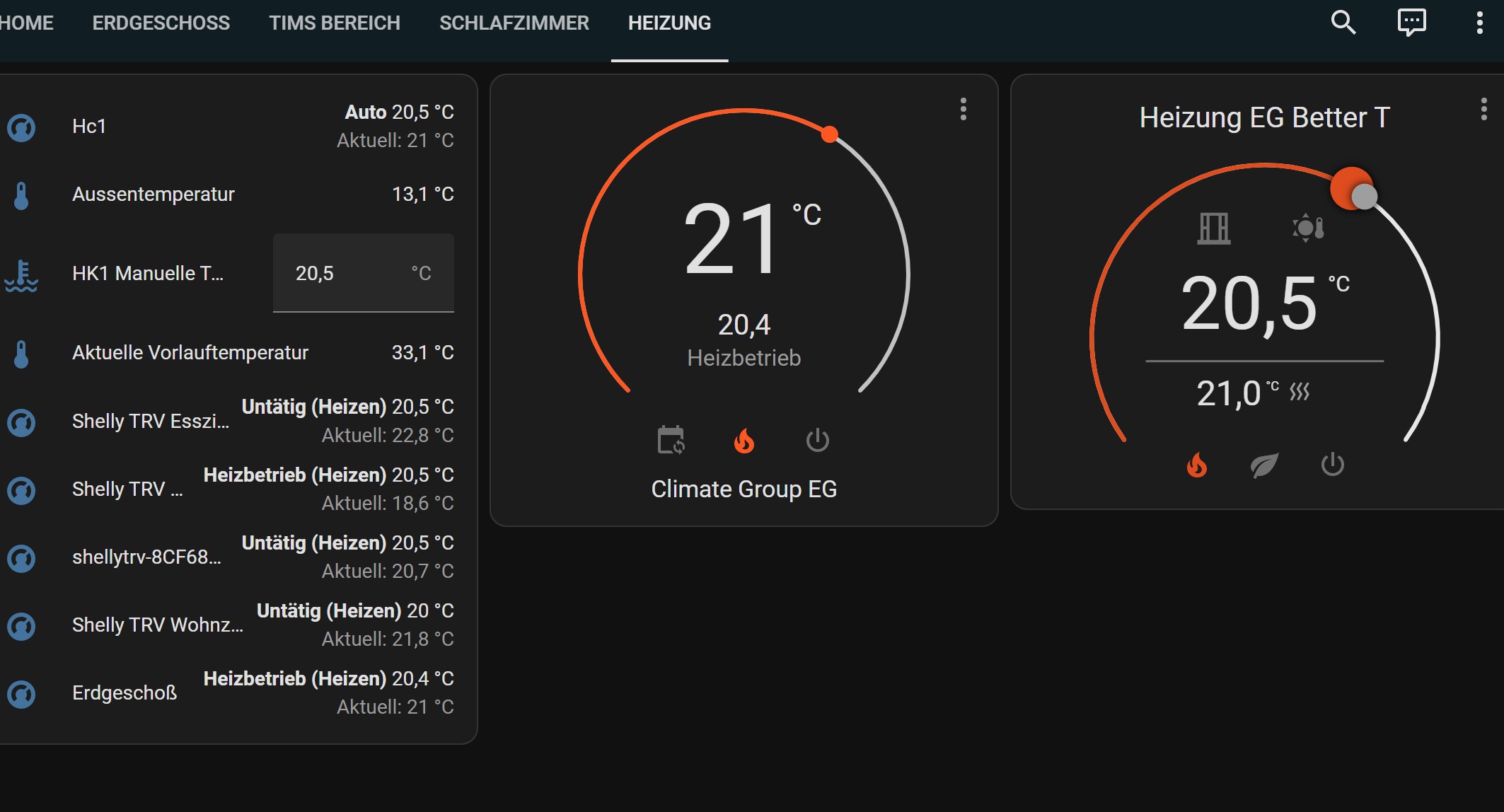 ein aktuelles Update meinerseits. Nach oftmaligen Hin- und Herprobieren habe ich jetzt doch alles wieder unter Climate Group zusammengefasst und darüber den Better Thermostat gestülpt. Die oben von mir beschriebene Variante ist abgestürzt…
