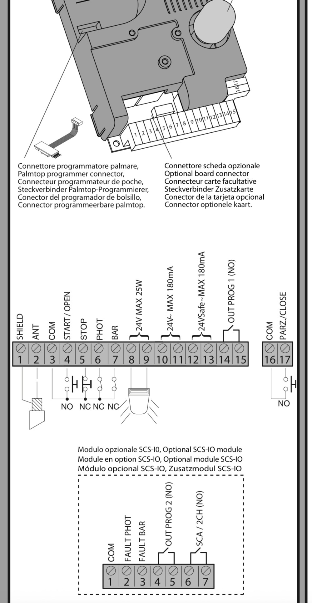 Wir haben ein BFT Garagentor, welches eine etwas andere Kontaktbelegung hat als andere Tor. Die Steuerung funktioniert nicht über einen Taster sondern über 2 (auf und zu).