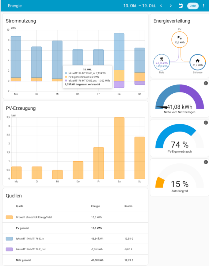 na ja, das Dashboard zeigt bei mir eigentlich nur den Verbrauch seit ich das Dashboard hinzugefügt habe. Verbrauch für Jahr, Monat Tag oder Stunde bekomme ich dort nicht augeschlüsselt bzw. angezeigt.