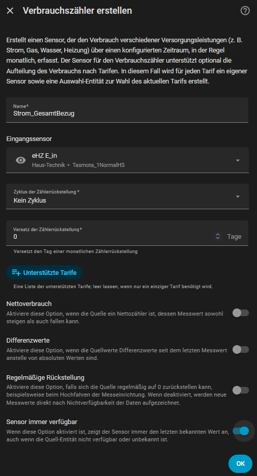Diesen Sensor gibst du dann im Energiedashboard als Quelle an.