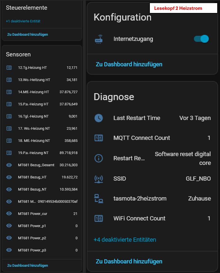 Weiterhin verwende ich einen zweiten Sensor um den HT / NT auszulesen.
