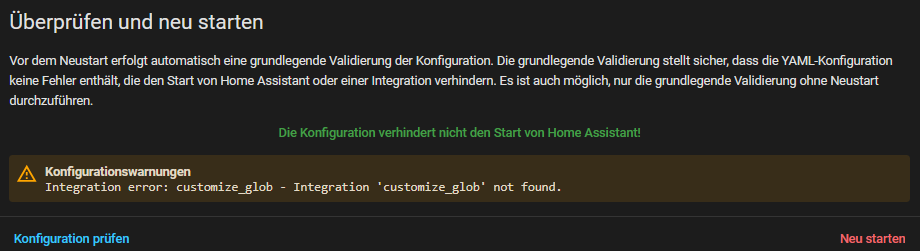 Wenn es direkt am Anfang ohne Leerzeichen steht , denkt Homeassitant es wäre eine Integration.
