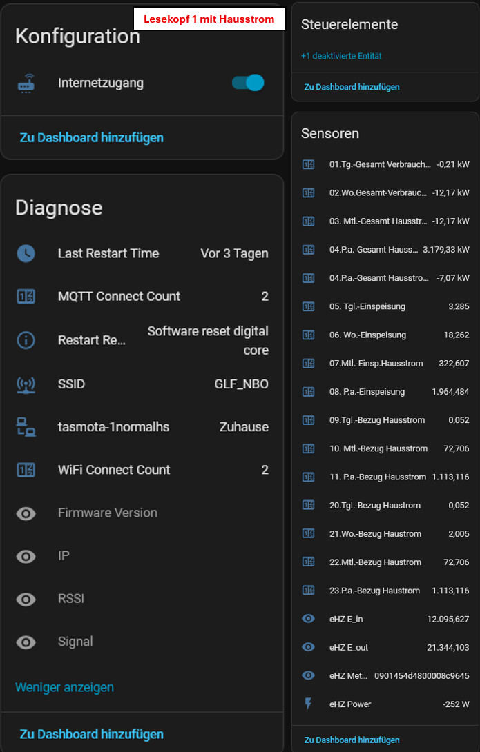 Daten bekommt der Sensor… wenn auch nur wenig, da der Bezug aktuell zu 97% von der PV angedeckt wird..
