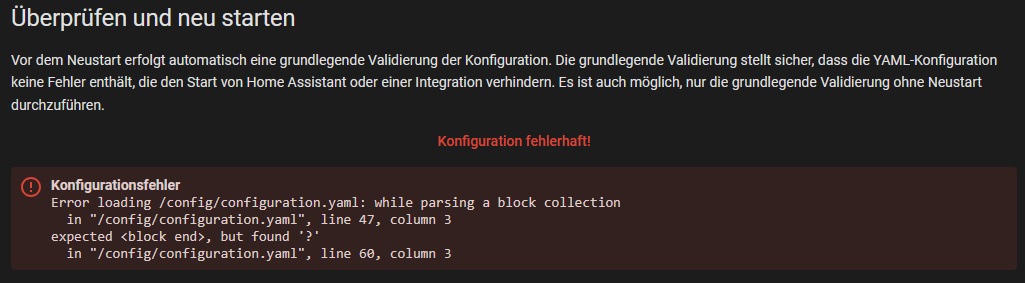 Jedoch kommt es nun zu einem Fehler wenn ich die Yaml prüfe.