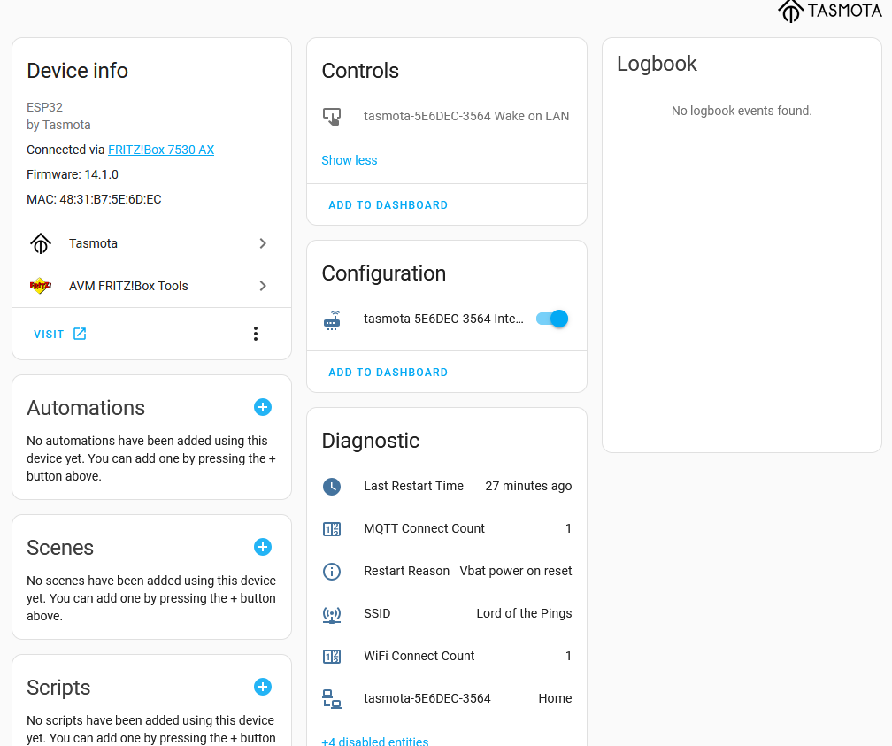 Den SMR habe ich dann in HA über MQTT hinzugefügt, das sieht erstmal auch alles gut aus. Allerdings sehe ich keinerlei Verbrauchtsentitäten.