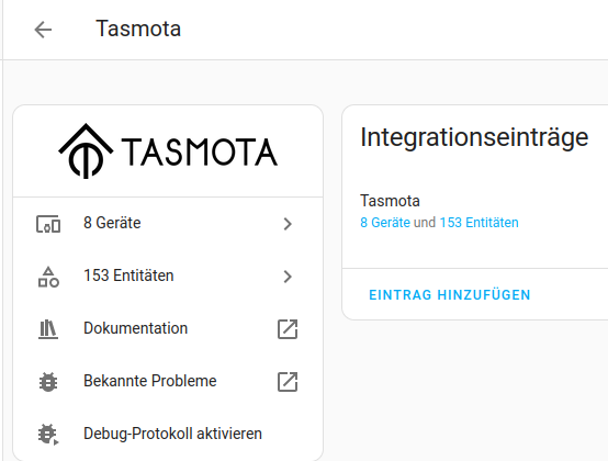 oder SetOption19 1 (die MQTT Topics sollte bei der HA MQTT Integration auftauchen)