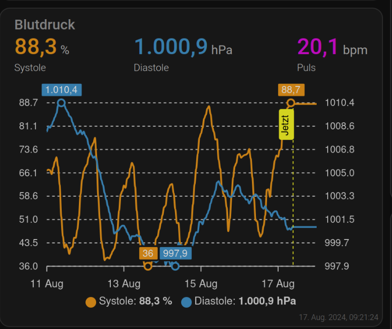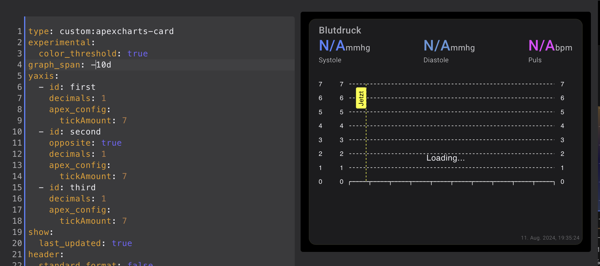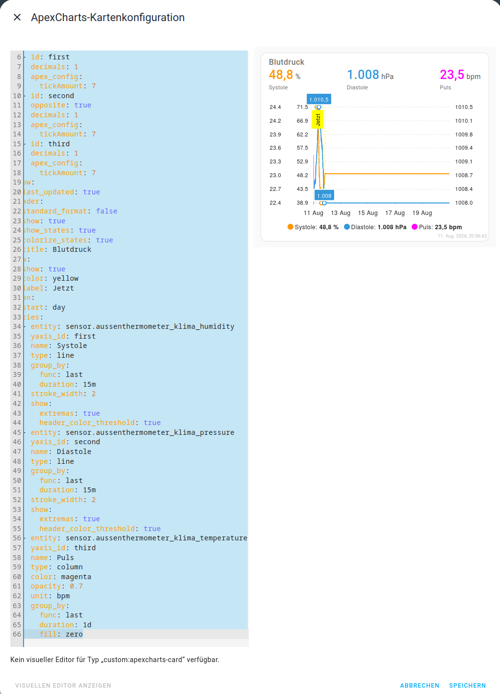 Ich möchte meinen Blutdruck in der Apex Chart Card abbilden. Mit zwei