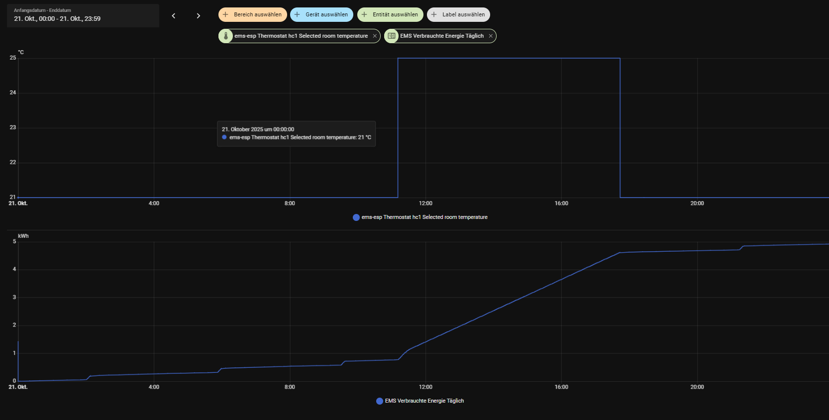 Bei wenig Überschuss wird auf 21°C zurückgestellt.