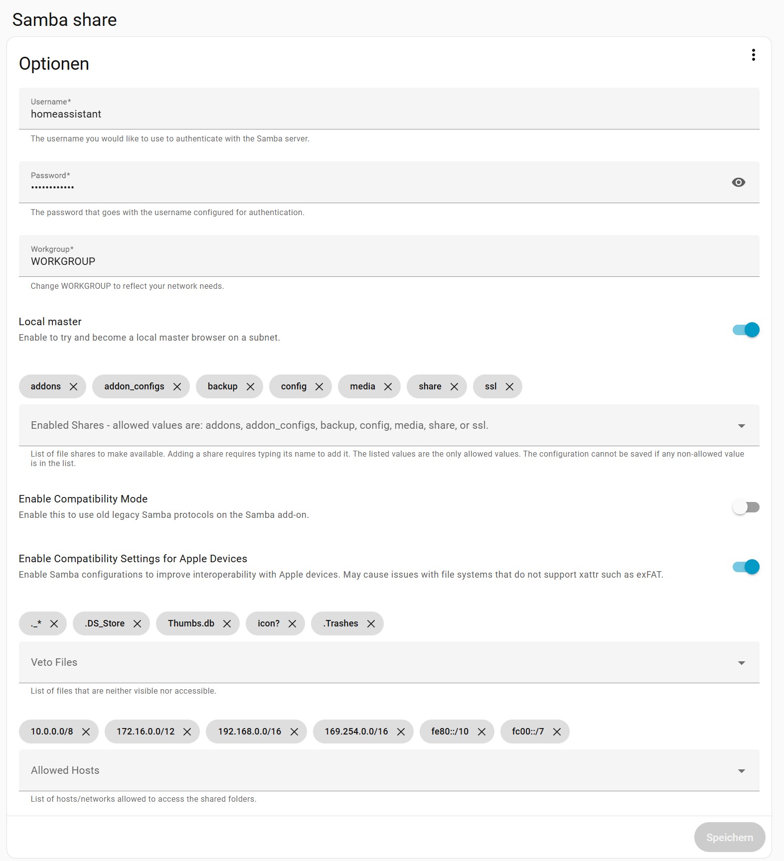 Das habe ich bei der HA SMB-Share Anleitung gefunden: