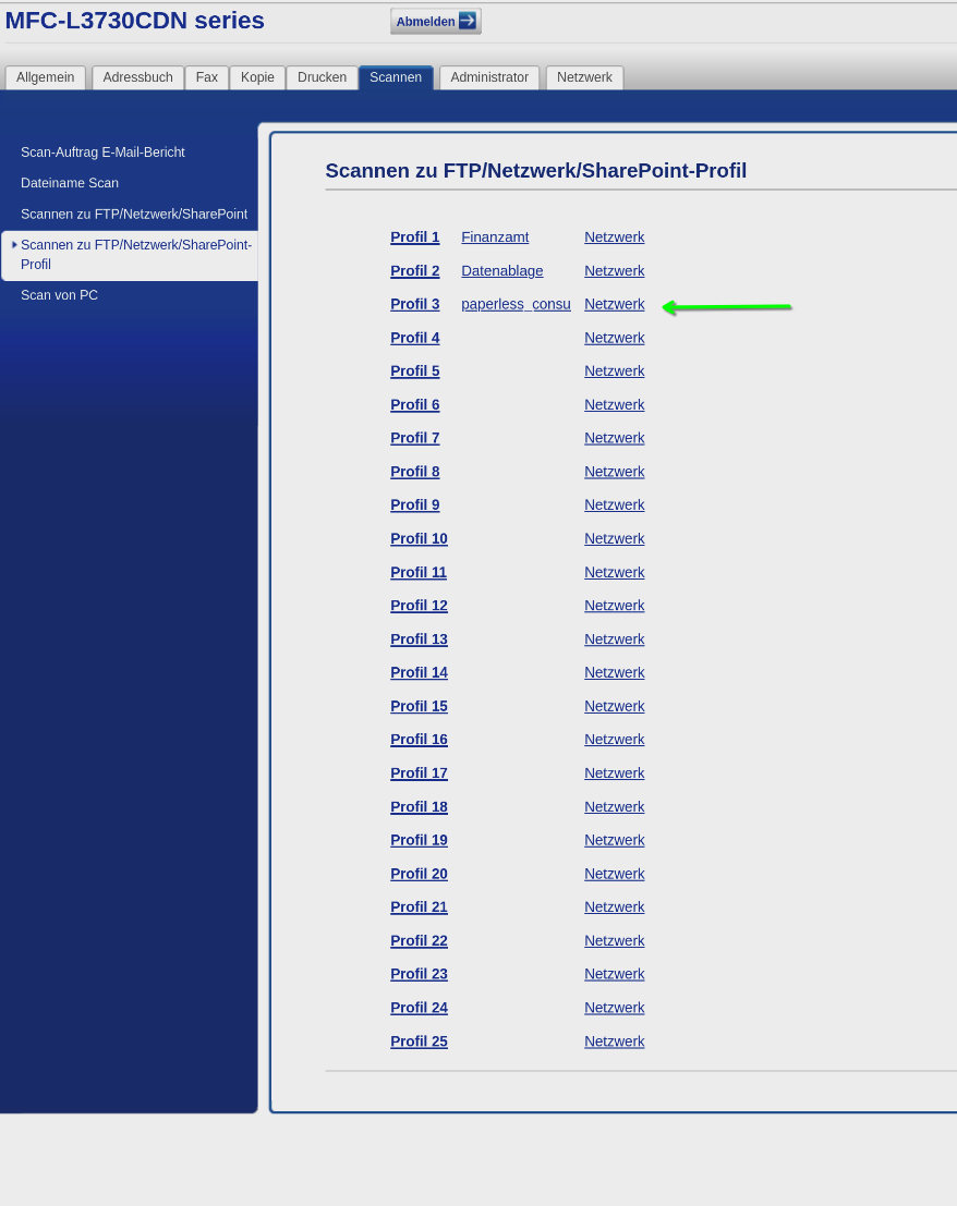 Schon mal versucht, dass so beim Drucker / Scanner einzutragen