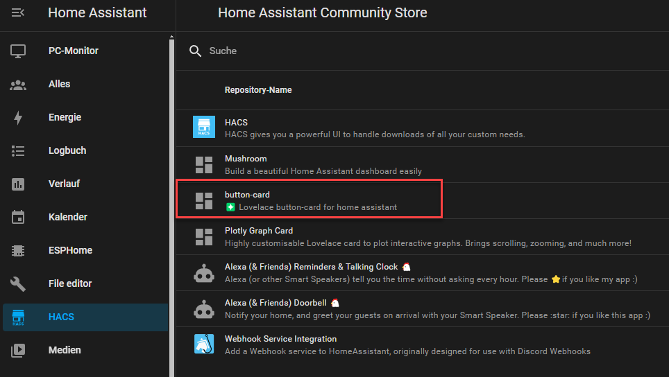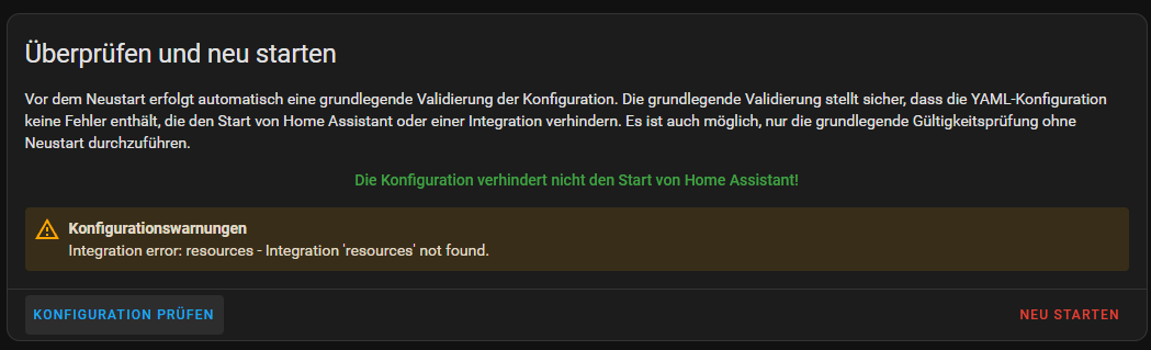 Also habe ich diese aus HACS heruntergeladen und im Config.yaml den Zusatz zugefügt.