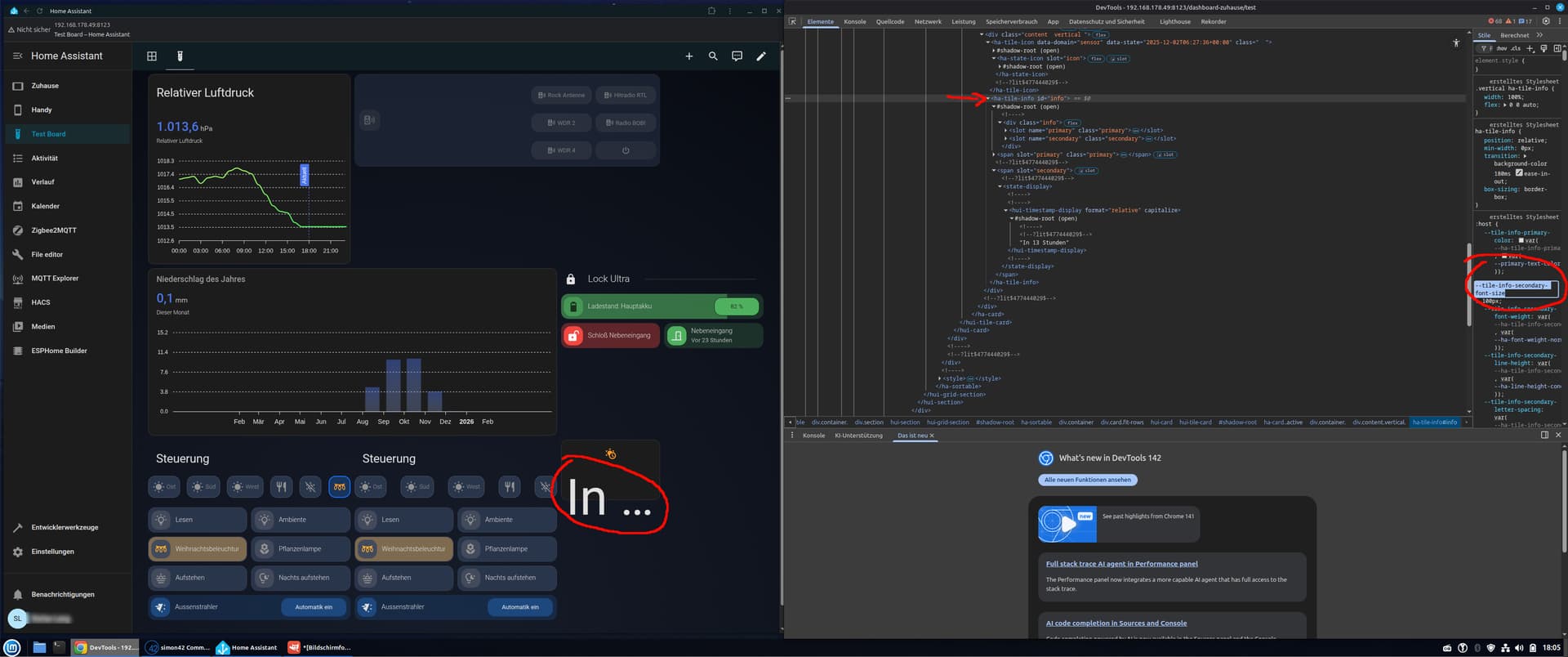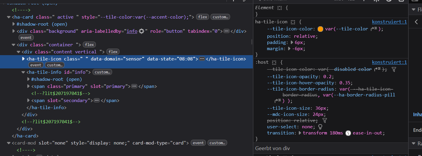 Ich versuche meinem Text und das Icon in der “tile” per card_mod anzupassen.