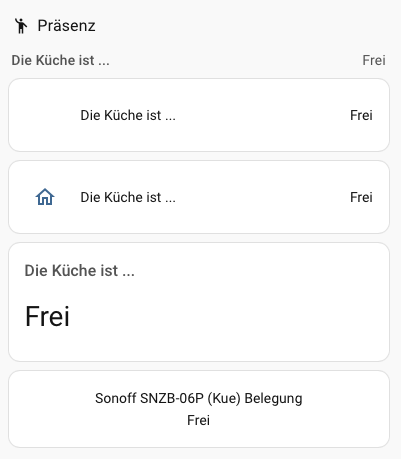 Die Küche ist ... {{states['binary_sensor.sonoff_snzb_06p_kue_occupancy'].state}}