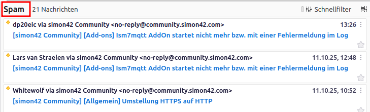 Diese automatische Einstufung als Spam hat recht zeitgleich stattgefunden, sprich ab dem Zeitpunkt wo auch irgendwelche “Schutzprogramme” das Forum als Phishing-Seite einstufen. Scheint so das mein Email-Provider die gleiche Datenbasis für die Einstufung als Spam nutzt.