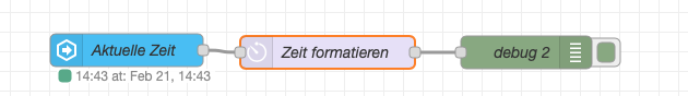 [{"id":"4b38c4117b695cb9","type":"server-state-changed","z":"5e38a40b1ab38ea9","name":"Aktuelle Zeit","server":"a1aba8eb.bfd618","version":5,"outputs":1,"exposeAsEntityConfig":"","entityId":"sensor.time","entityIdType":"exact","outputInitially":true,"stateType":"str","ifState":"","ifStateType":"num","ifStateOperator":"is","outputOnlyOnStateChange":false,"for":"0","forType":"num","forUnits":"minutes","ignorePrevStateNull":false,"ignorePrevStateUnknown":false,"ignorePrevStateUnavailable":false,"ignoreCurrentStateUnknown":false,"ignoreCurrentStateUnavailable":false,"outputProperties":[{"property":"payload","propertyType":"msg","value":"","valueType":"entityState"},{"property":"data","propertyType":"msg","value":"","valueType":"eventData"},{"property":"topic","propertyType":"msg","value":"","valueType":"triggerId"}],"x":2014,"y":1132,"wires":[["5f0a45ca9d8663c0"]]},{"id":"1f23579162873683","type":"debug","z":"5e38a40b1ab38ea9","name":"debug 2","active":true,"tosidebar":true,"console":false,"tostatus":false,"complete":"true","targetType":"full","statusVal":"","statusType":"auto","x":2380,"y":1134,"wires":[]},{"id":"5f0a45ca9d8663c0","type":"moment","z":"5e38a40b1ab38ea9","name":"Zeit formatieren","topic":"","input":"payload","inputType":"msg","inTz":"Europe/Berlin","adjAmount":"0","adjType":"minutes","adjDir":"add","format":"YYYY-MM-DD HH:mm","locale":"de","output":"payload","outputType":"msg","outTz":"Europe/Berlin","x":2198,"y":1134,"wires":[["1f23579162873683"]]},{"id":"a1aba8eb.bfd618","type":"server","name":"Home Assistant","version":5,"addon":true,"rejectUnauthorizedCerts":true,"ha_boolean":"y|yes|true|on|home|open","connectionDelay":true,"cacheJson":true,"heartbeat":false,"heartbeatInterval":30,"areaSelector":"friendlyName","deviceSelector":"friendlyName","entitySelector":"friendlyName","statusSeparator":"at: ","statusYear":"hidden","statusMonth":"short","statusDay":"numeric","statusHourCycle":"h23","statusTimeFormat":"h:m","enableGlobalContextStore":true}]