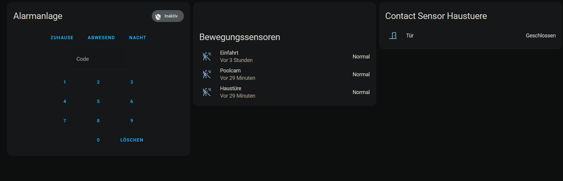 Sensor der Alarmanlage hat Zustand “abwesend” oder “nacht”