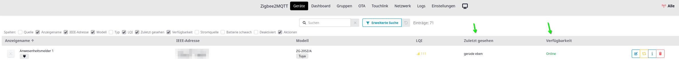 ich sehe in der Zigbee Addon Oberfläche jetzt den online oder offline status aber sollte nicht in den Zigbee Geräte eigenen Seiten jetzt auch soetwas auftauchen?