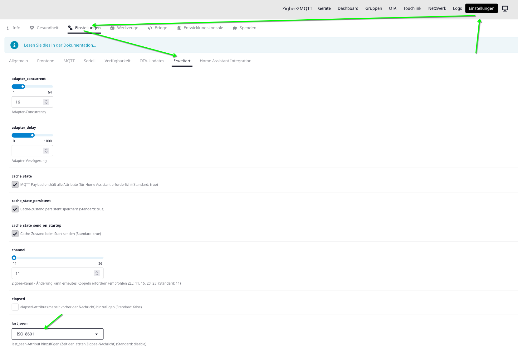 Genau und sobald ich das was bei dir das erste Bild ist von disable auf ISO_8601 umstelle es speichere und neu starte, ist Z2mqtt nicht mehr fähig zu starten und crashed mit dingen wie ungleicher Network Key.