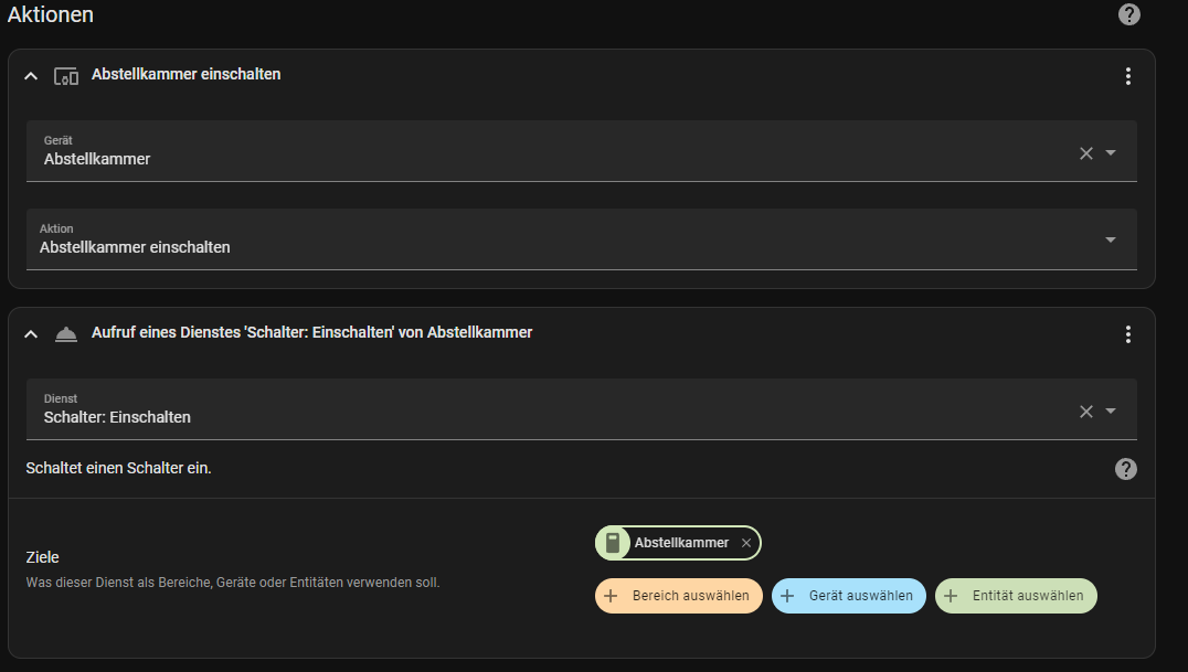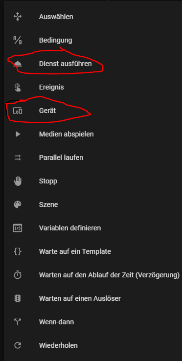 Wenn ich das jetzt über Dienst machen möchte tauchen die Zigbee Komponenten nicht auf.
