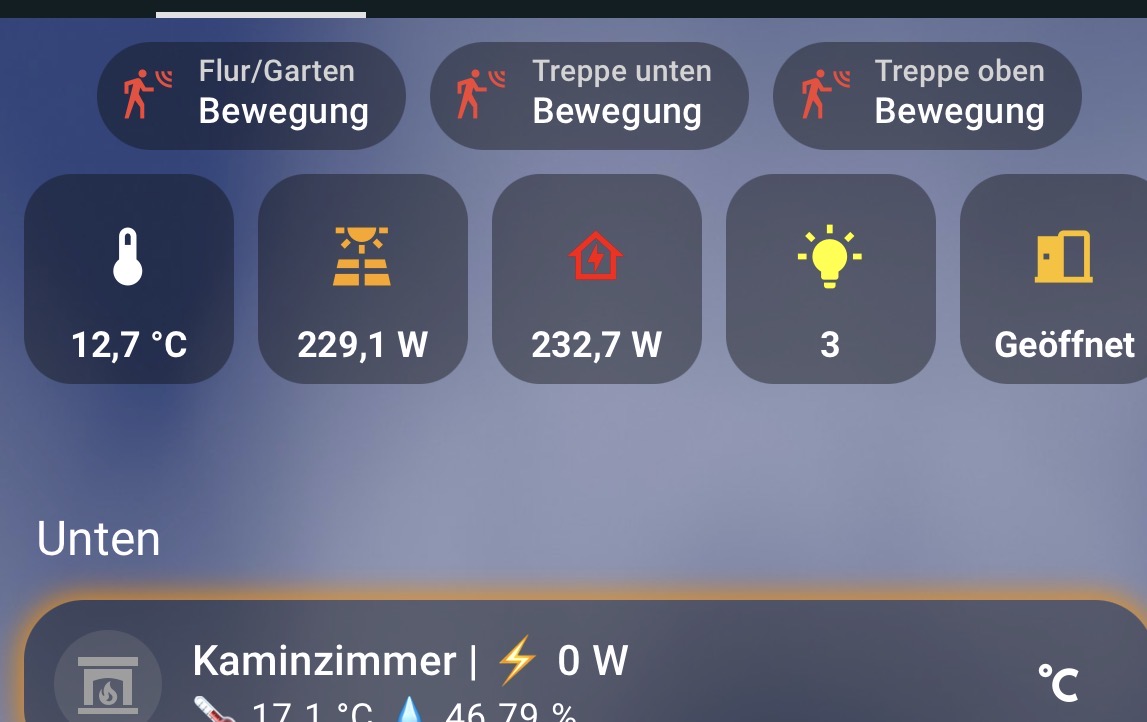 Sonst werden z.B. motion Sensoren als Badge im Icon eingeblendet, wenn Bewegung erkannt.