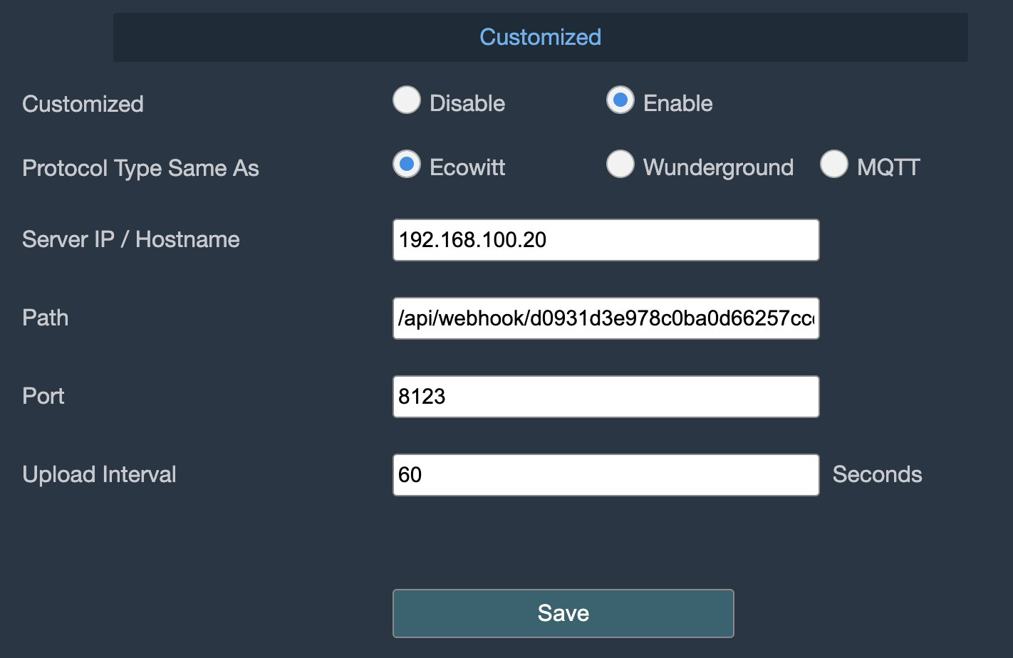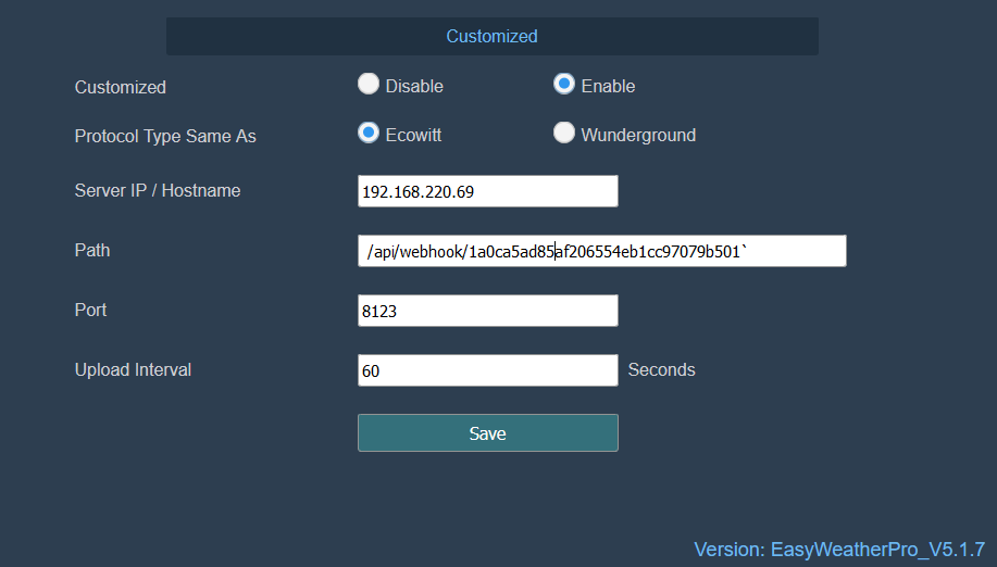 Und Du hast auch auf der Ecowitt selbst die Einstellungen wie in der Anleitung vorgenommen?