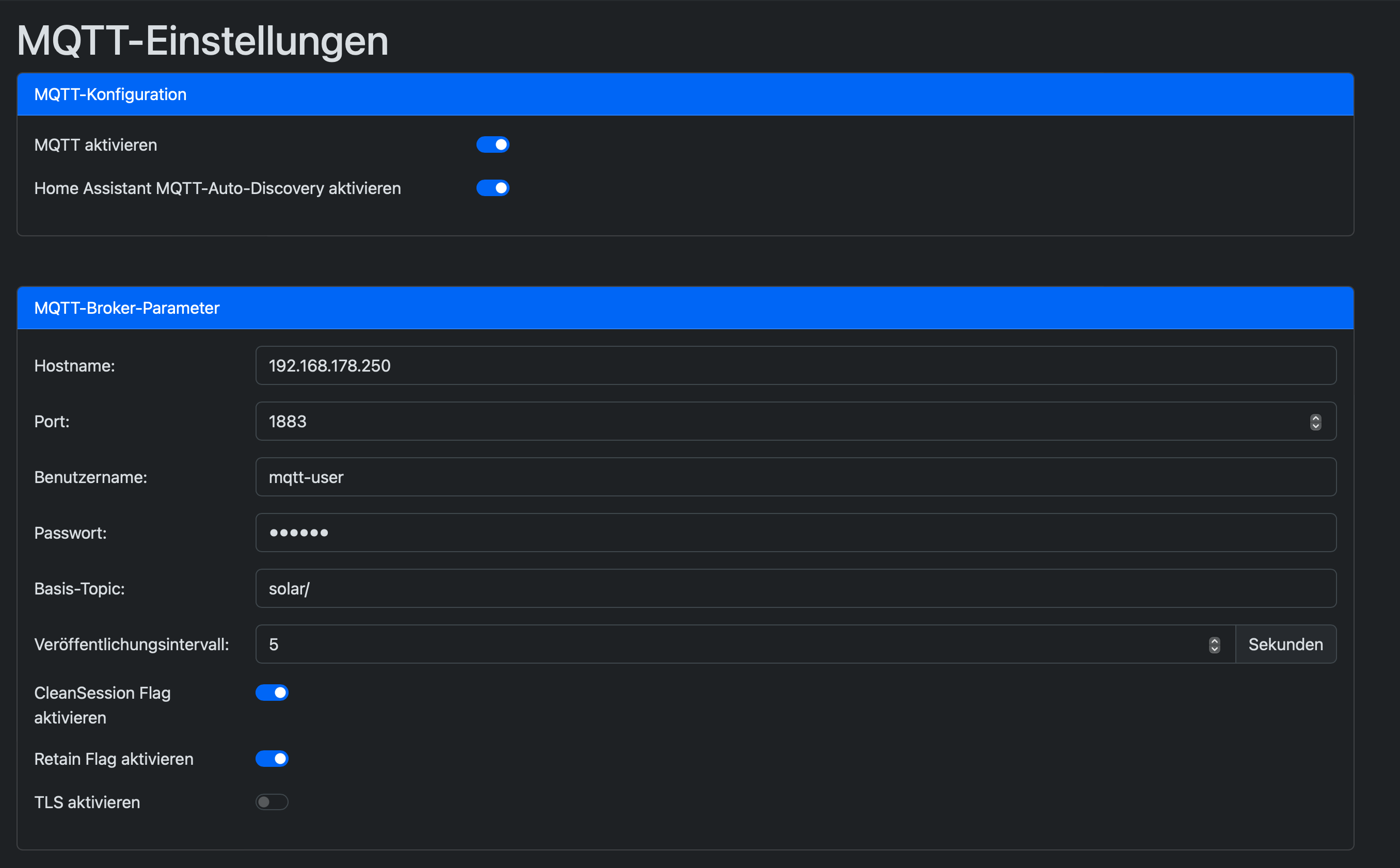 ich bin neu hier und habe das gleiche Problem wie Prosciutto gehabt hat. Ich habe meinen Solar Flow über den Zendure-eigenen MQTT-Broker im HA eingebunden. Jetzt würde ich gerne ebenfalls über MQTT meinen Hoymiles HM 600 über Open DTU einbinden und habe keinen Plan wie ich das mache kann. Es gibt ja nur die eine Integration im MQTT Addon. Wenn ich im Open-DTU die Zendure Broker Daten eingebe bekomme ich keine Entitäten im HA angezeigt obwohl mir Open DTU eine Verbindung anzeigt. Was muss ich noch machen? Bridgen? Wenn ja wie?