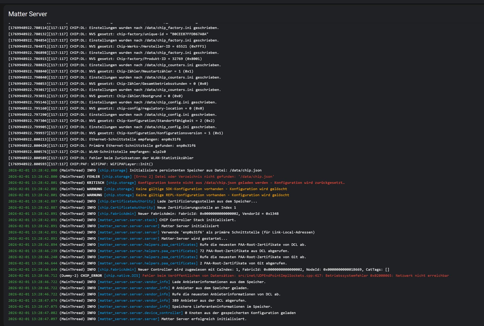 Das wird mir als Fehler im Matter Add-On angezeigt weis aber nicht warum