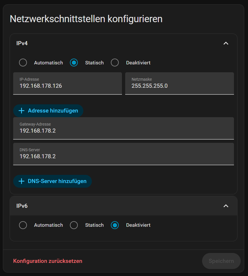 Wie sehen denn Deine Netzwerkeinstellungen unter HA jetzt aus. Bsp. von mir hier: