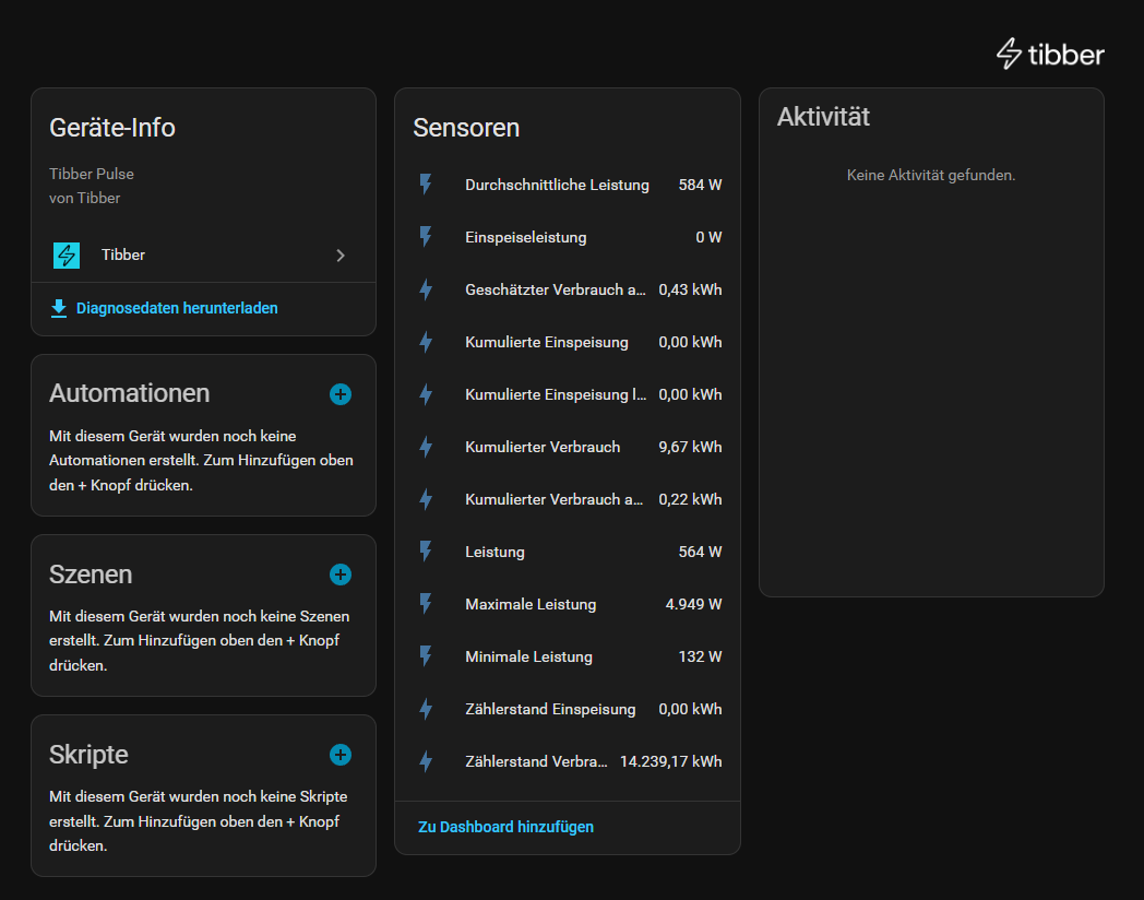 Ich verwende Tibber, den Netzbezug habe ich mit “Zählerstand Verbrauch” definiert, die Netzleistung mit “Leistung”.